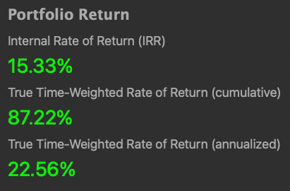 January returned 11.5% against the market’s roughly 2.5%. This brings cumulative returns to 87% since inception - a 22.5% annualized rate of return.