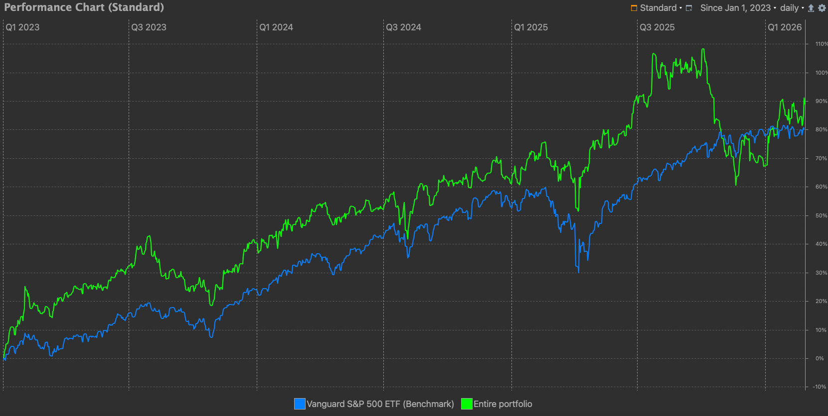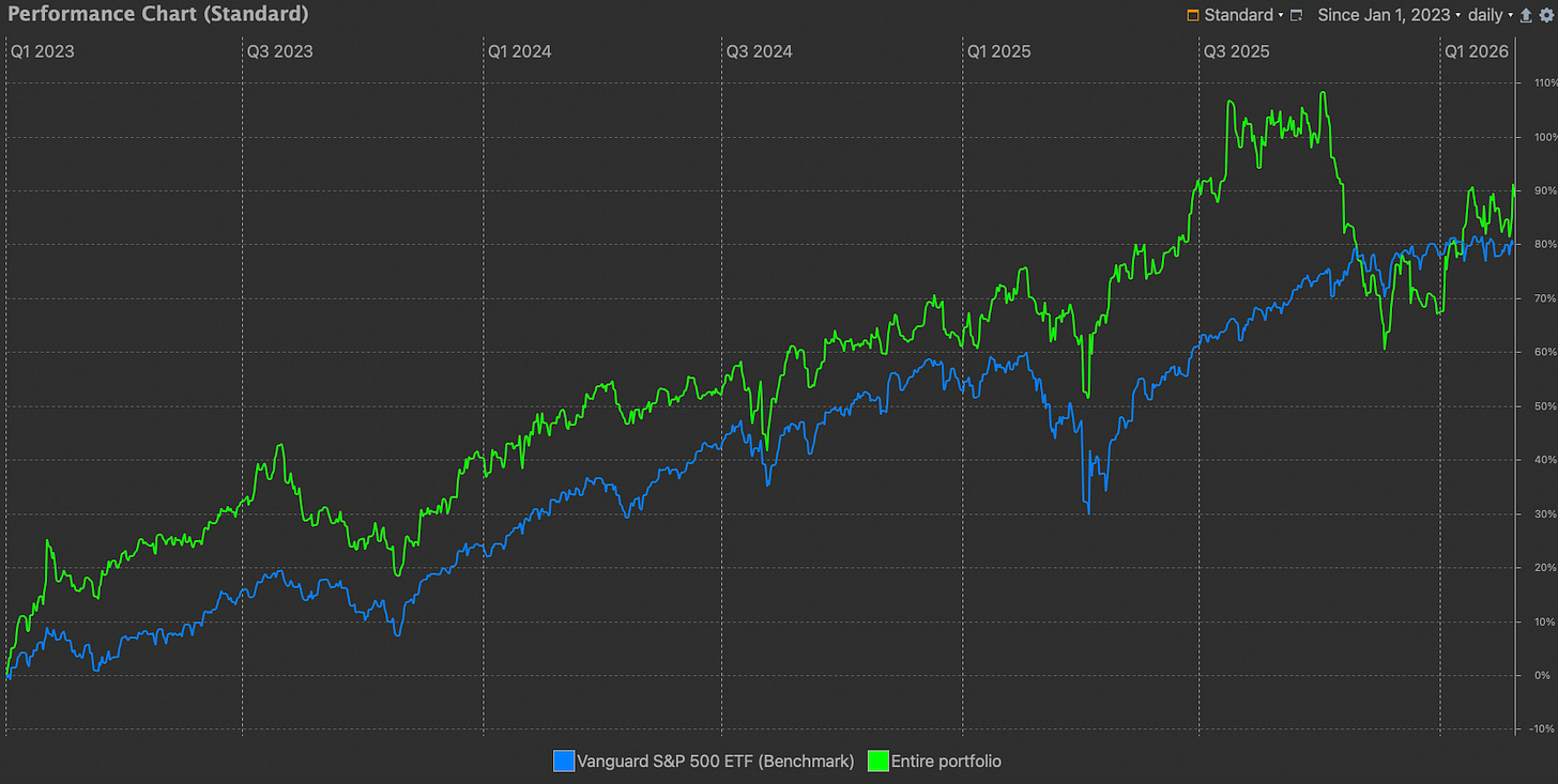 Meanwhile, the portfolio’s two largest positions did most of the work for me - each now up just over 35% since initiation. I still think there’s meaningful runway ahead for both. When something is working, the job isn’t to tinker. It’s to hold.