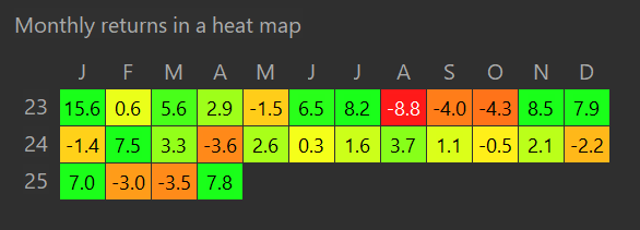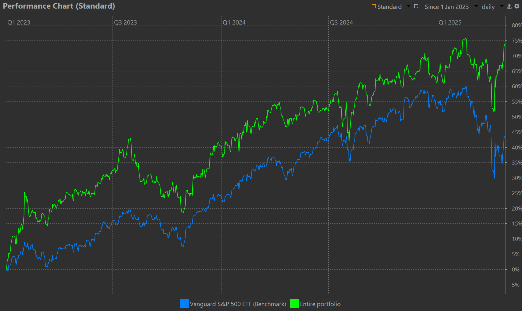 Despite the market's turbulence this year, the portfolio has performed very well, achieving a 7.8% gain in 2025 so far compared to the markets -6%.