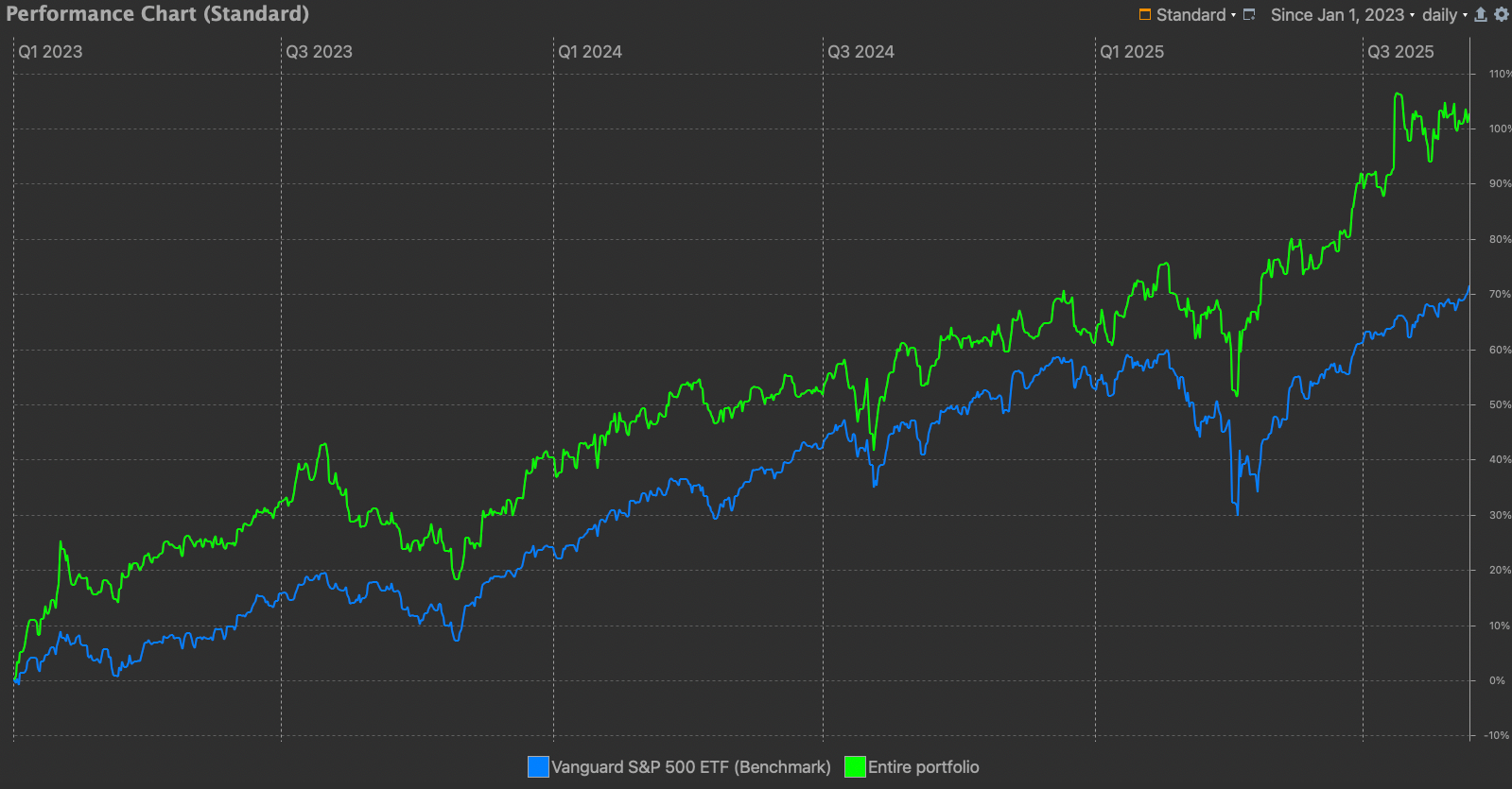 The portfolio continues to perform well, up 26% year to date. The market, meanwhile, has returned around 12%.