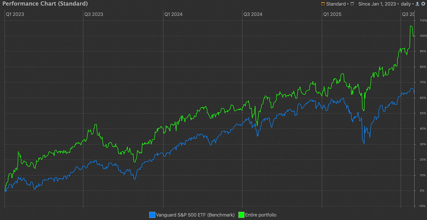 The portfolio is up 23.6% in 2025 so far. The market, meanwhile, has returned 6%.